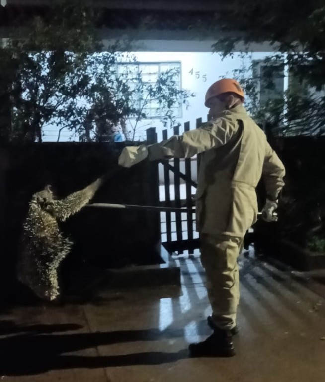 O Corpo de Bombeiros Militar de Mato Grosso (CBMMT) resgatou na noite deste sábado (19.10) um porco-espinho que estava em uma árvore na rua Silvio