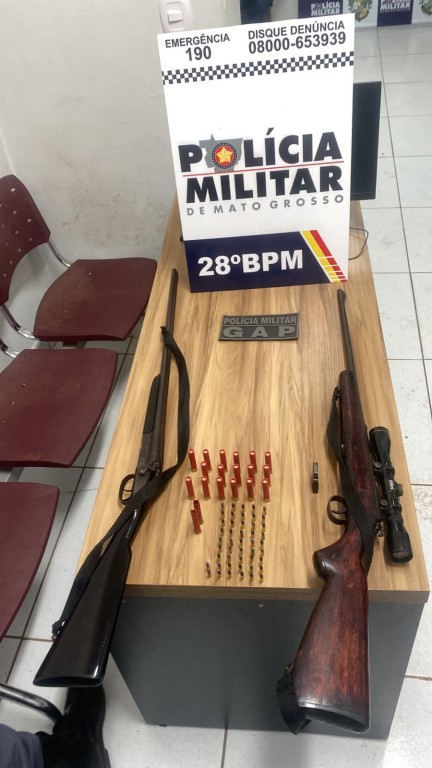 Policiais militares do 28º Batalhão prenderam um homem de 57 anos pelos crimes de invasão de propriedade rural, ameaça e porte ilegal de arma, na