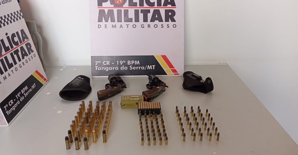 Equipes do 19º Batalhão da Polícia Militar de Tangará da Serra apreenderam, neste domingo (20.10), duas armas de fogo e 167 munições durante patrulhamento ostensivo