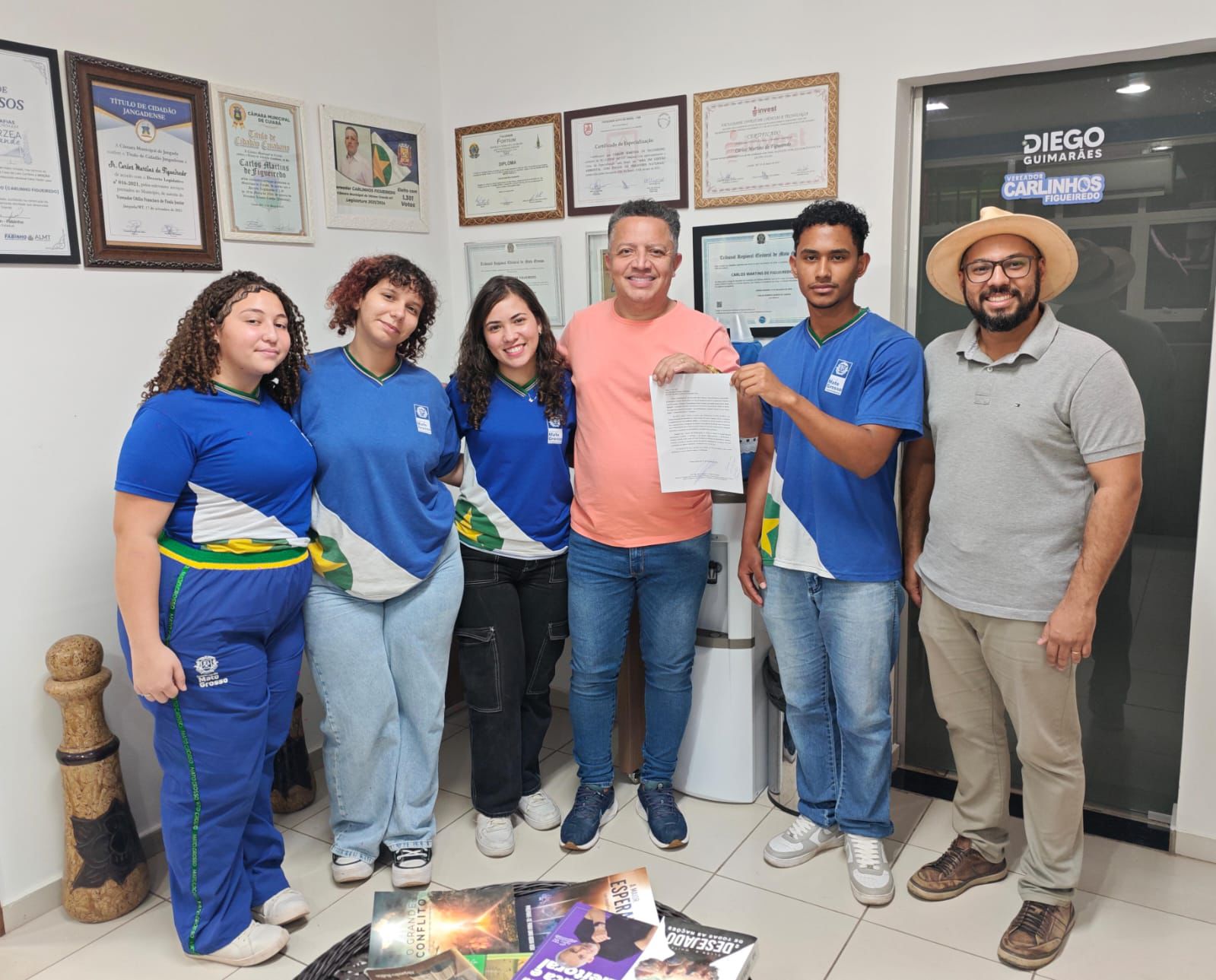 Nesta quarta-feira, dia 17, o vereador Carlinhos Figueiredo recebeu uma comitiva da Escola Estadual Prof. Fernando Leite de Campos, formada pelo professor de Geografia Jalme