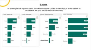 Botelho lidera também em todos os cenários de segundo turno. Em um confronto direto com Abilio, o deputado estadual venceria com 46,76% das intenções de voto, enquanto liberal tem 28,81%. Não sabem ou não responderam é 21,62%, enquanto outros 2,81% votariam nulo ou branco.