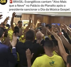 • “Dia da Música Gospel”. “A música gospel agora tem um dia nacional de celebração. Em celebração, evangélicos que estavam no local cantaram o clássico hino “Alvo Mais que a Neve”, bastante tocado em Santa Ceia.