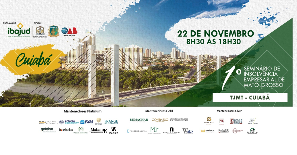 Estão abertas as inscrições para o 1º Seminário de Insolvência Empresarial de Mato Grosso, que ocorrerá no próximo dia 22 de novembro, em Cuiabá. Promovido