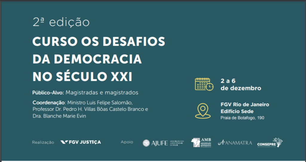 Magistrados e magistradas interessados em participar do curso ‘Os desafios da democracia no século XXI – 2ª edição’, têm até as 23h59 do dia 8