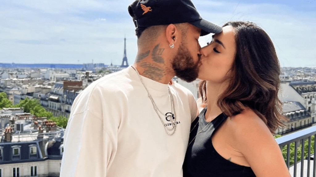 Bruna Biancardi, de 30 anos, e Neymar, de 32, publicaram fotos românticas na praia, nesta terça-feira (29). O jogador apareceu atrás da influenciadora, segurando-a nos braços, enquanto