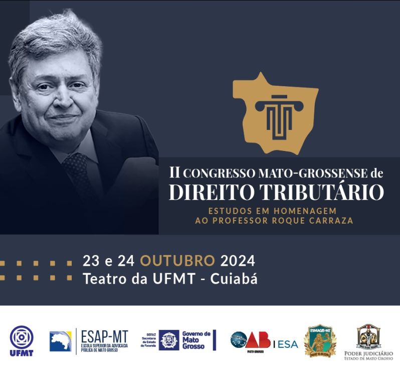 Será realizado na próxima semana, nos dias 23 e 24 de outubro, o “II Congresso Mato-Grossense de Direito Tributário – edição em homenagem a Roque Carrazza”. O evento terá lugar no Teatro da Universidade Federal de Mato Grosso, em Cuiabá, e a Escola Superior da Magistratura de Mato Grosso (Esmagis-MT) é uma das organizadoras.