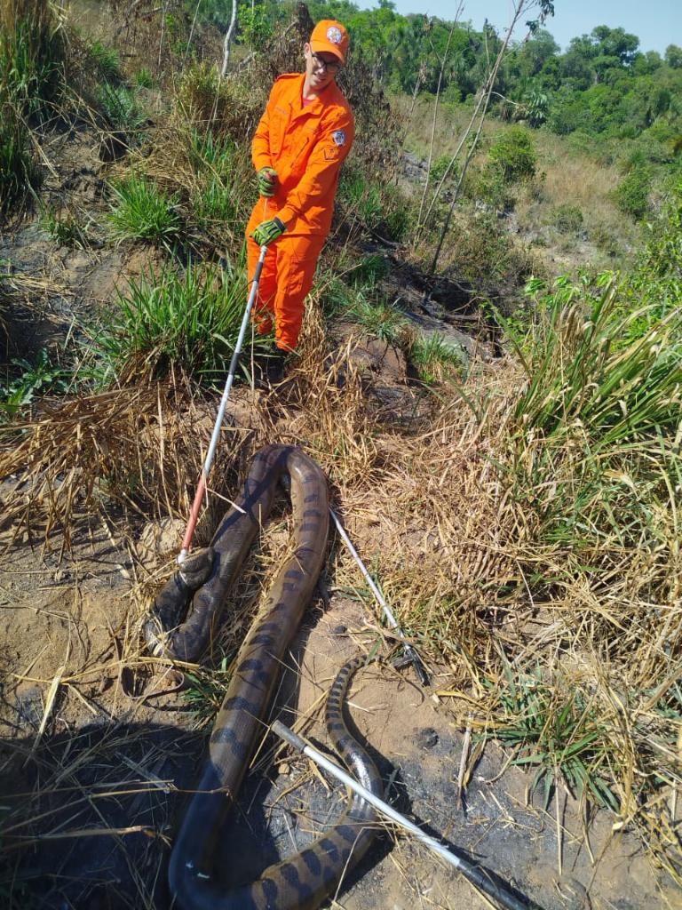 O Corpo de Bombeiros Militar de Mato Grosso (CBMMT) realizou na manhã deste sábado (6.9) a captura de uma cobra sucuri de aproximadamente cinco metros de cumprimento, que estava no pátio de uma empresa de produção de algodão localizada às margens da rodovia MT-449 em Lucas do Rio Verde (332 km de Cuiabá).