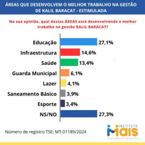 A pesquisa indica que a população de Várzea Grande está atenta ao trabalho que vem sendo desenvolvido pelas diversas secretarias municipais. A Educação, a Saúde e a Infraestrutura foram as mais citadas na pesquisa, o que demonstra que a população tem percebido o trabalho desenvolvido nestas áreas.