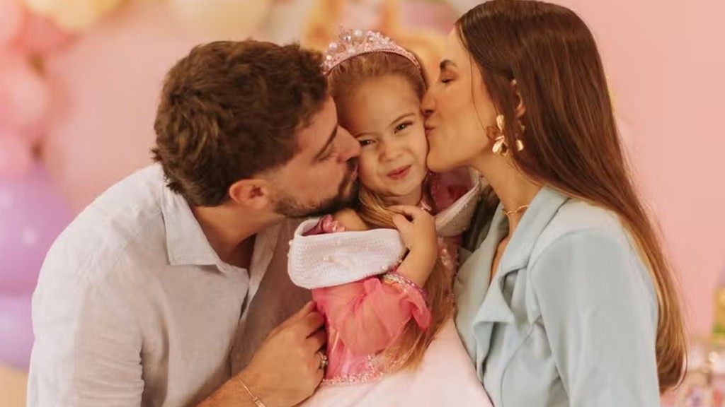 O ator Eike Duarte, de 27 anos, e a esposa, a criadora de conteúdo Natália Vivacqua, de 28, celebraram os 4 anos da filha, Filipa, a Pipa, no fim de semana. O casal reuniu 80 convidados em um salão de festas na zona oeste do Rio de Janeiro. A celebração contou com a presença de Larissa Manoela e André Luiz Frambach, amigos de Eike e Natália. O tema da festa foi Bela Adormecida e Rapunzel.