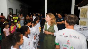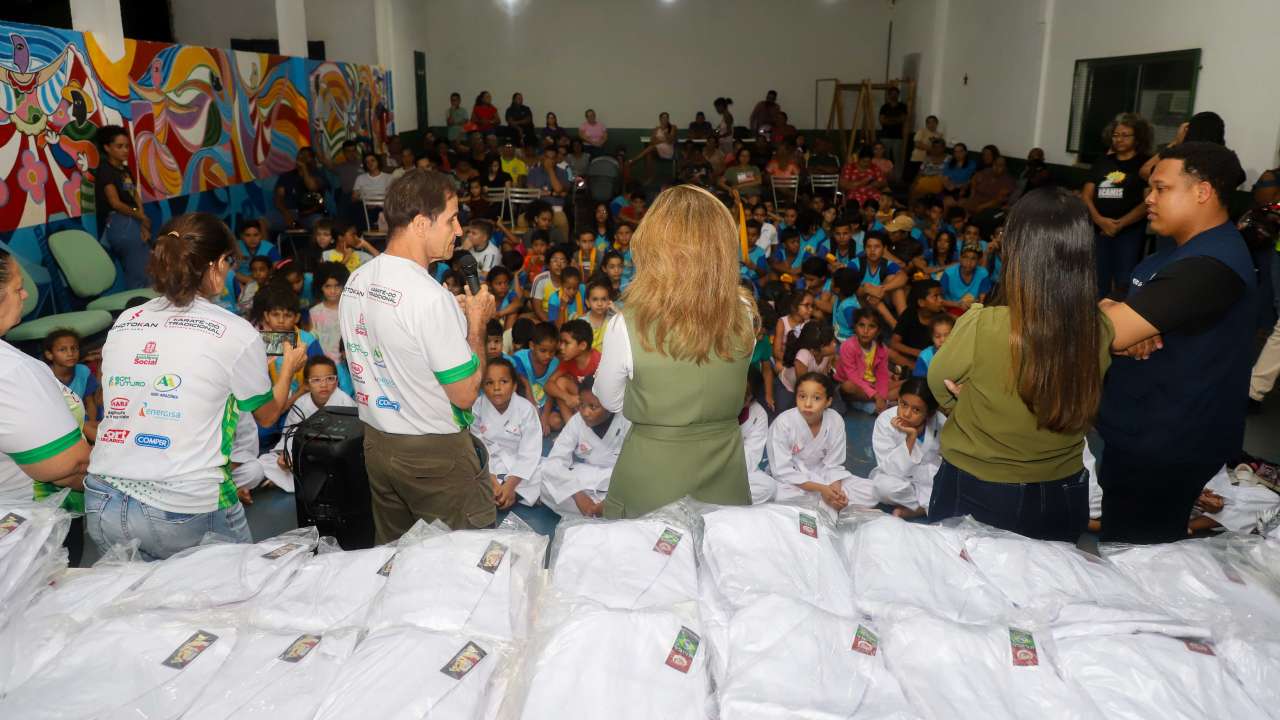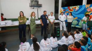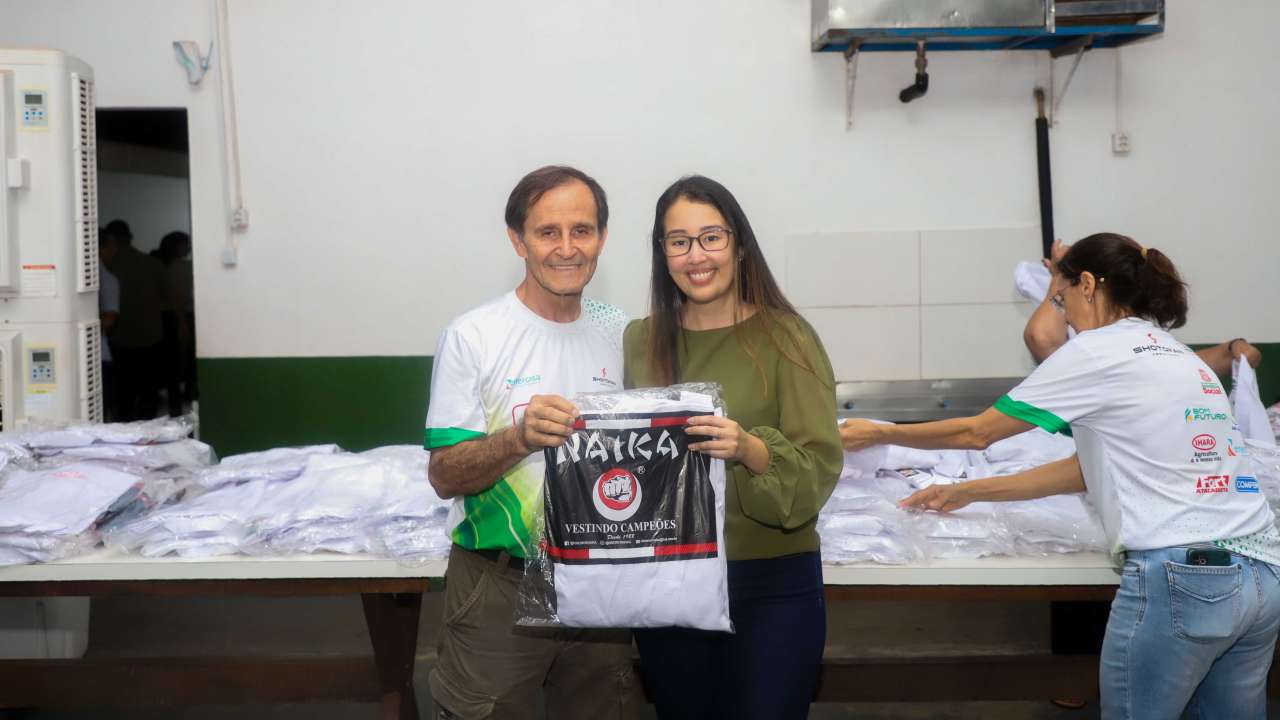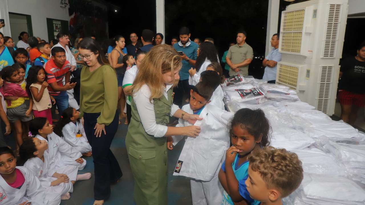 A prefeita de Várzea Grande, Flávia Moretti (PL), ao lado da secretária de Assistência Social, Cristina Saito, realizou a entrega de 200 quimonos para crianças atendidas pela Associação Caminhando para Mais um Sonho (ACAMIS) e pela tradicional instituição Shotokan. A ação foi viabilizada por meio de parceria com a Secretaria de Assistência Social e o Conselho Municipal dos Direitos da Criança e do Adolescente (CMDCA), com recursos do Fundo da Infância e Adolescência (FIA).