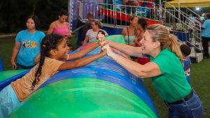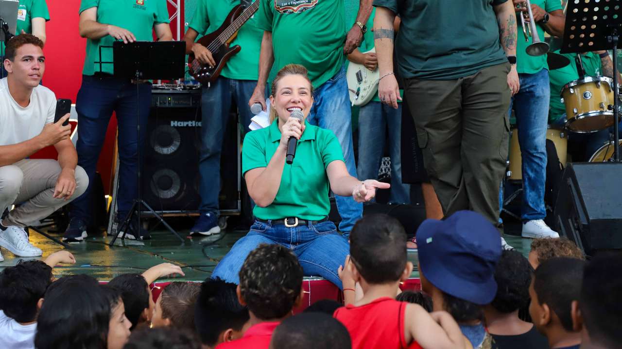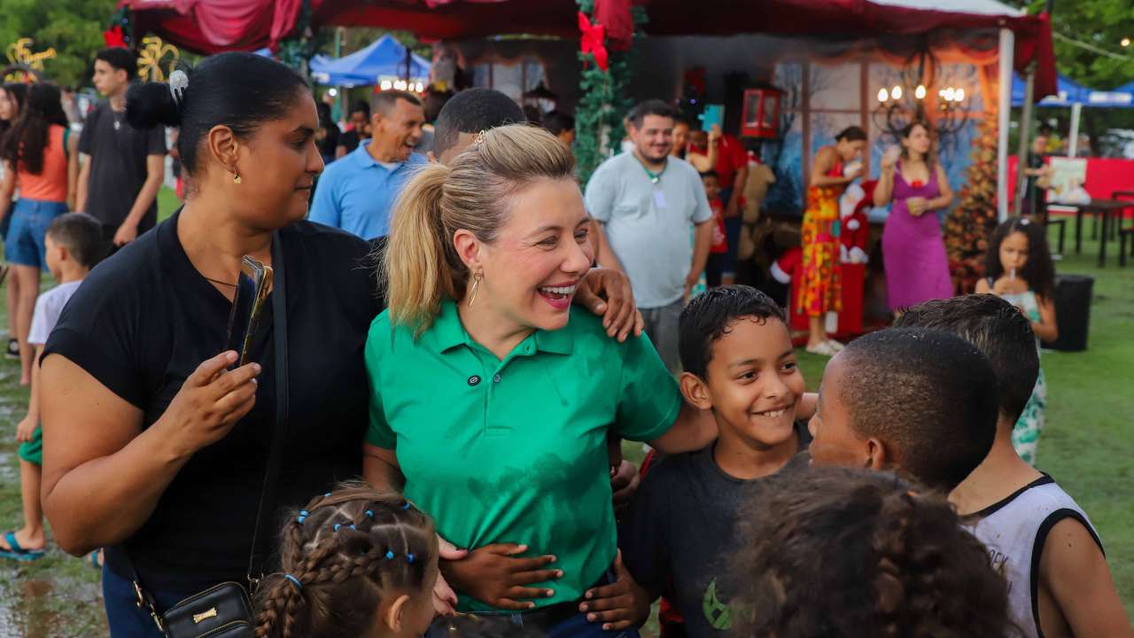 A prefeita de Várzea Grande, Flávia Moretti (PL), participou do primeiro dia do Natal Luz e Esperança neste sábado (20.11). O evento reuniu familas várzea-grandenses, no Parque Bernardo Berneck, com momento de louvor, fé, música, sorteio de prêmios e muita diversão.