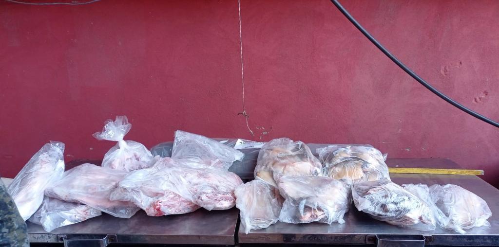 A equipe também apreendeu carne de animal silvestre, sendo 19 quilos de porco-do-mato, 1 jabuti e diversos caranguejos mortos encontrados em condições inadequadas, além de celulares e documentos relacionados ao comércio ilegal de fauna para apuração investigativa.