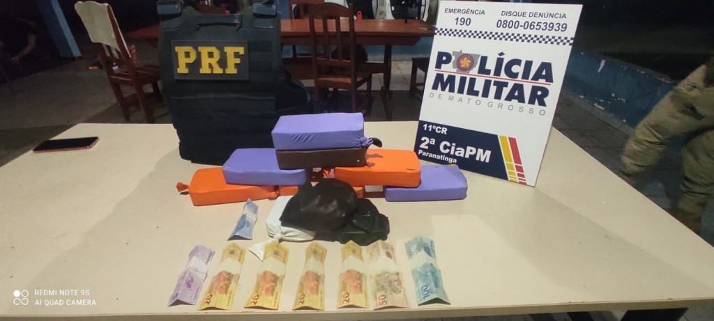 Trabalho integrado entre a Polícia Militar e Polícia Rodoviária Federal (PRF) resultou na apreensão de dez tabletes de pasta base de cocaína, no final da noite desta quarta-feira (17.05), em Paranatinga. Na ação, um homem de 24 anos foi preso em flagrante por tráfico ilícito de drogas.