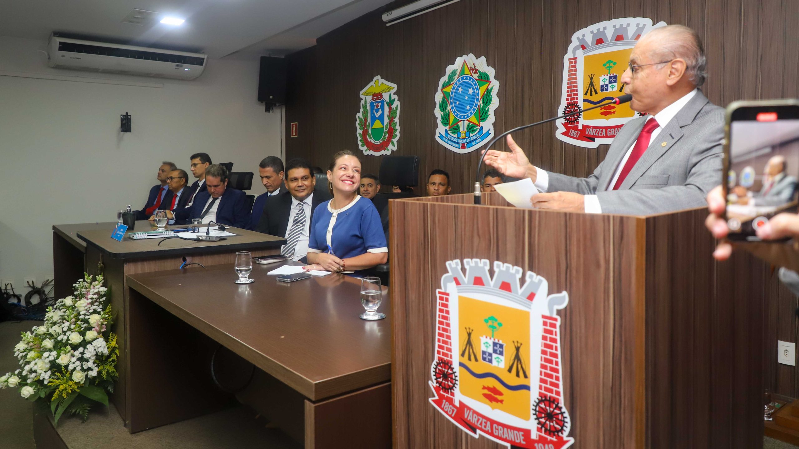 A prefeita de Várzea Grande, Flávia Moretti (PL), participou da sessão solene de instalação dos trabalhos legislativos da Câmara Municipal no ano de 2025, que marcaram o início da 20ª legislatura. Durante a cerimônia, Moretti destacou a importância dos vereadores para o desenvolvimento do município.