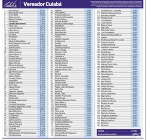 A mais recente pesquisa de intenção de voto realizada pelo Instituto Gazeta Dados apontou também quem são os candidatos mais lembrados na disputa para a Câmara de Cuiabá. De acordo com a pesquisa, a 19 dias da eleição, 37,72% dos eleitores ainda não decidiram em quem votar para a Câmara Municipal.
