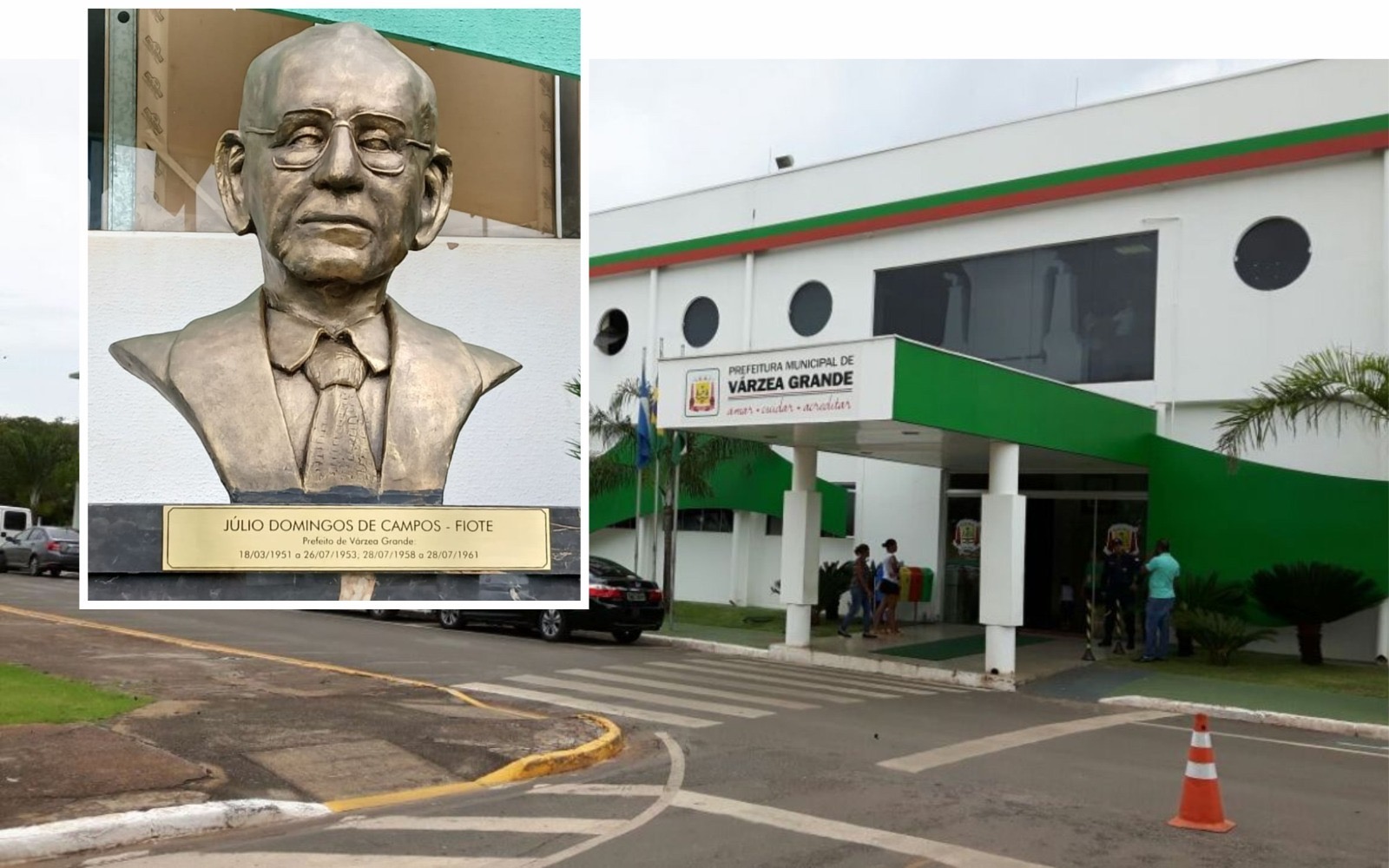 *POSTERIDADE* – O busto de seo Fiote defronte o hall de entrada da prefeitura é a mais recente homenagem prestada à sua memória, em Várzea Grande, onde o maior ginásio poliesportivo chama-se Fiotão; um residencial, uma Escola Municipal de Educação Básica e uma avenida rendem homenagem à sua memória; a sede da prefeitura recebeu o nome de Palácio Municipal Júlio Domingos de Campos, logo após seu falecimento, num gesto de reverência do então prefeito Murilo Domingos.