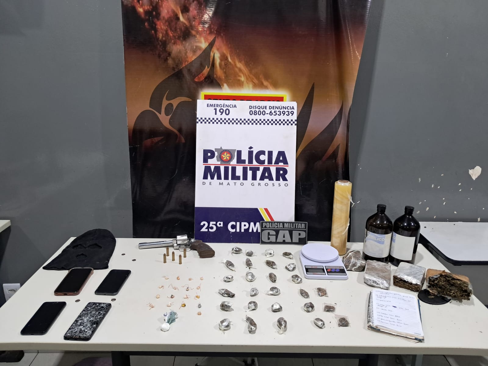 NO LOCAL TAMBÉM FOI ENCONTRADA A SENHORA MARIA EDUARDA, QUE SE APRESENTOU COMO NAMORADA DO SUSPEITO E INFORMOU ESTAR GRÁVIDA DELE, RELATANDO AINDA QUE AUXILIAVA NO EMBALO E NA COMERCIALIZAÇÃO DAS DROGAS VIA APLICATIVO WHATSAPP.